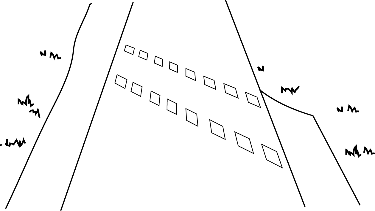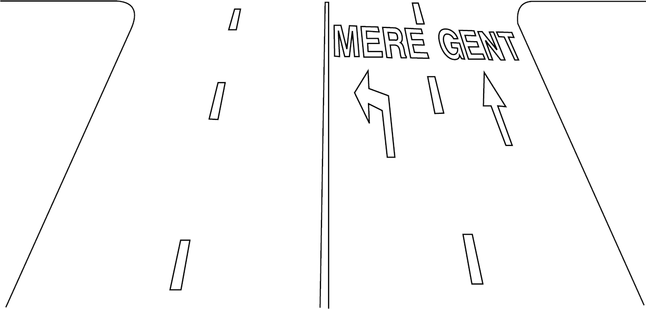 3. Kernfahrbahn: Teil der öffentlichen Straße, der begrenzt wird durch die in Artikel 73 § 2 erwähnten Straßenmarkierungen, die an beiden Seiten den fiktiven Rand der Fahrbahn anzeigen,