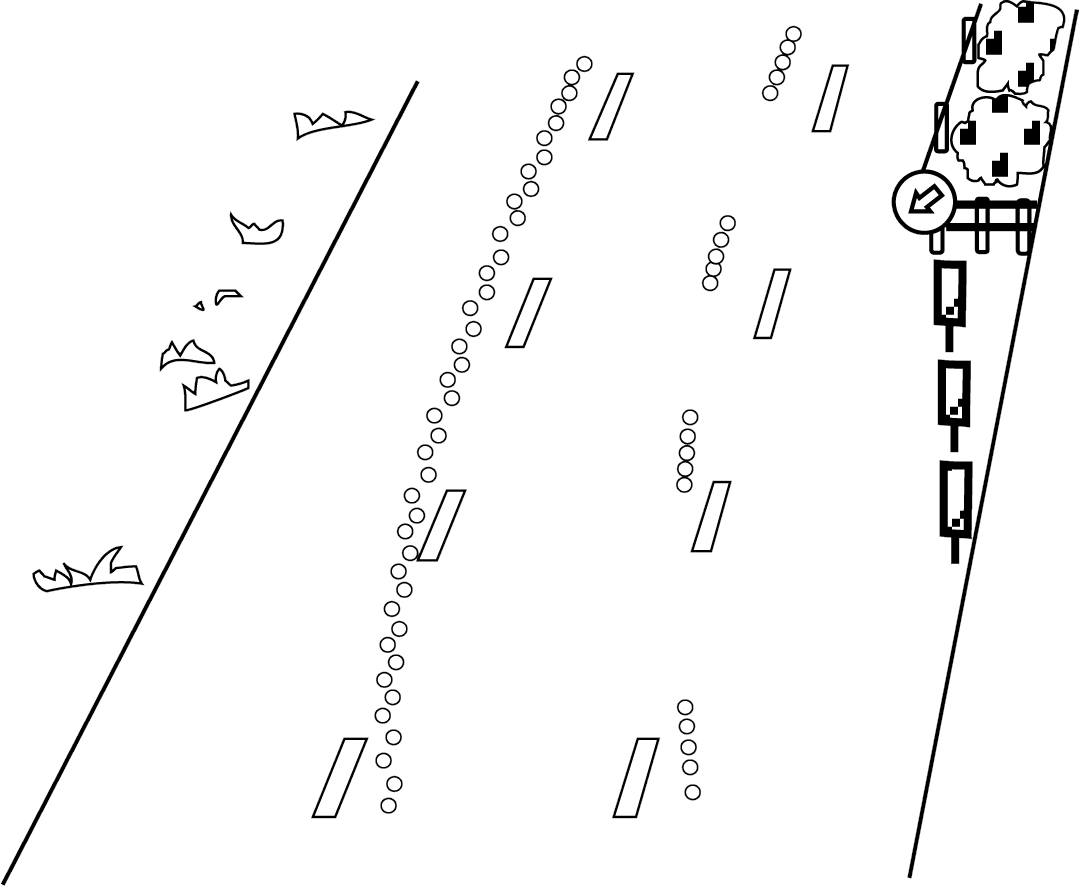 17. Bahnübergang: vollständige oder teilweise Querung der öffentlichen Straße durch einen oder mehrere außerhalb der öffentlichen Straße angelegte Schienenwege,