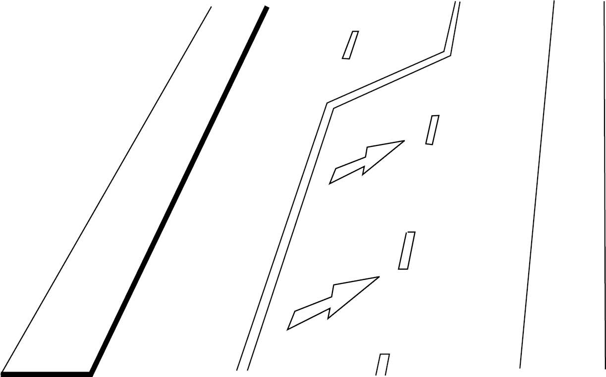 6. Seitenstreifen: Streifen entlang der Kernfahrbahn. Der Seitenstreifen ist kein Teil der Fahrbahn,