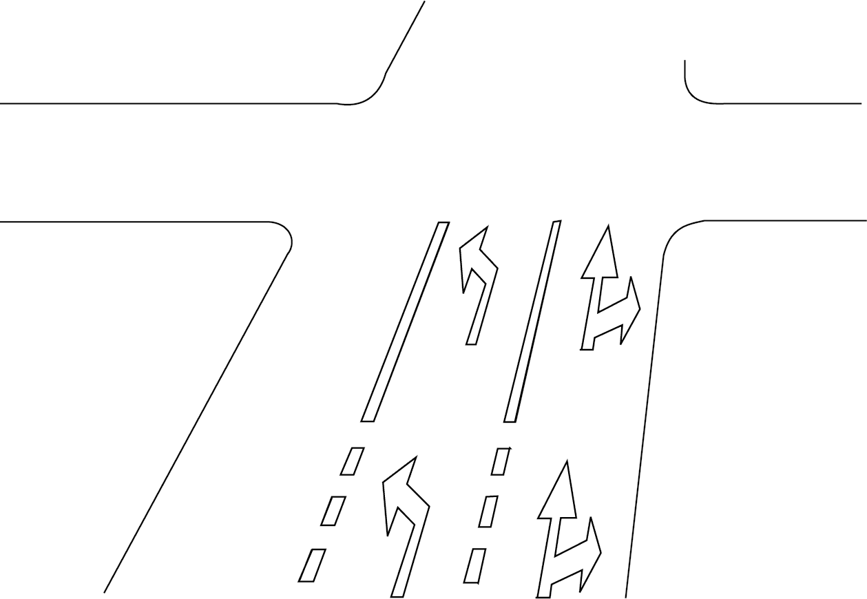 10. Kreuzung: Stelle, an der zwei oder mehr öffentliche Straßen aufeinandertreffen. Die Stelle, an der eine Auffahrt an die Hauptfahrbahn einer Autobahn anschließt, gilt als Kreuzung,
